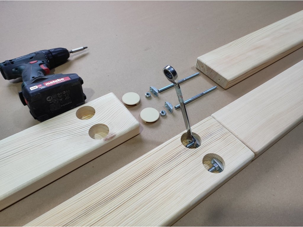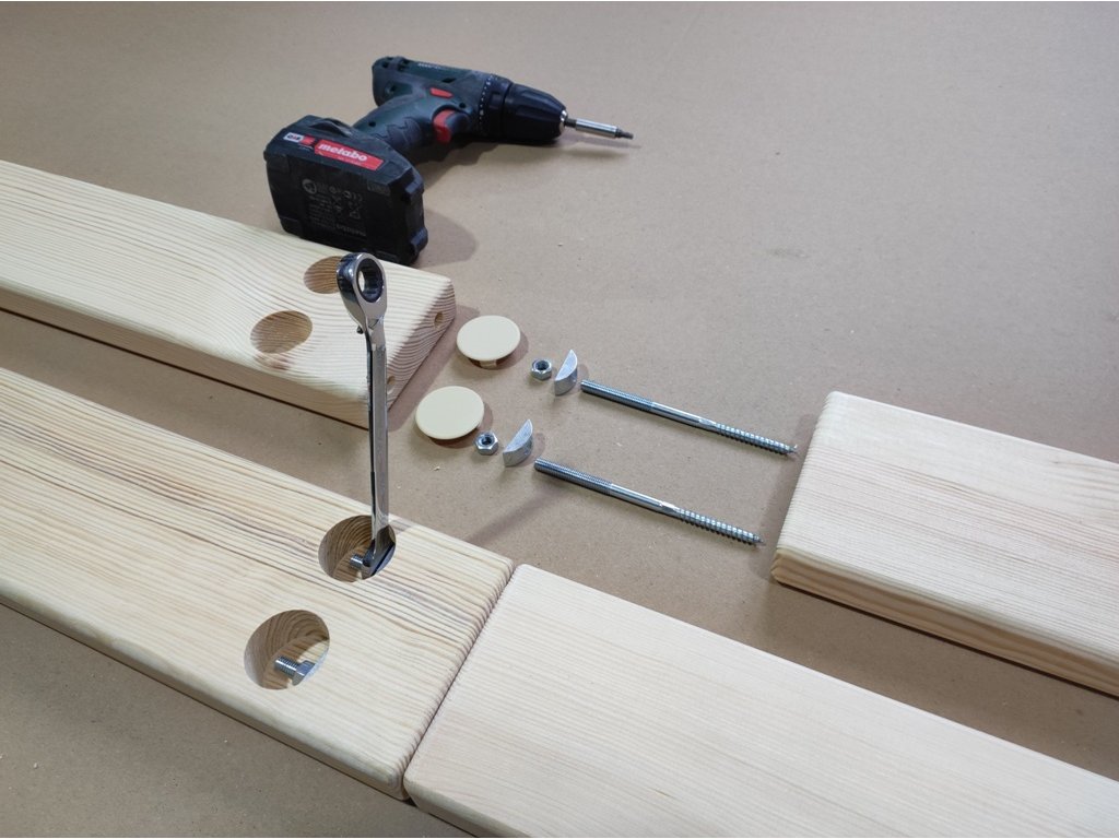 - Bočnice a hrazda: borovicové dřevo (bočnice jsou dvoudílné)
