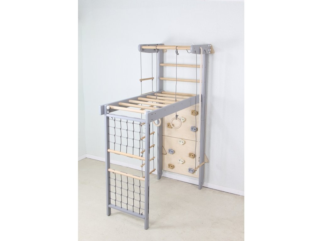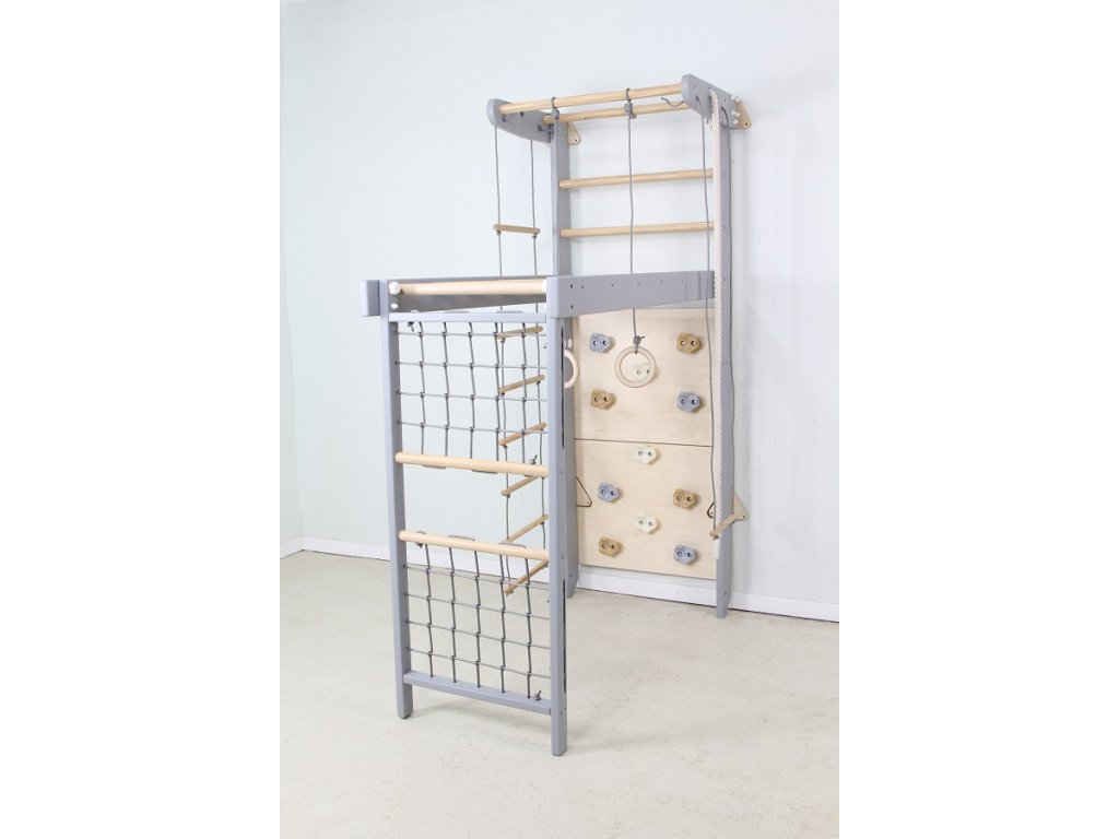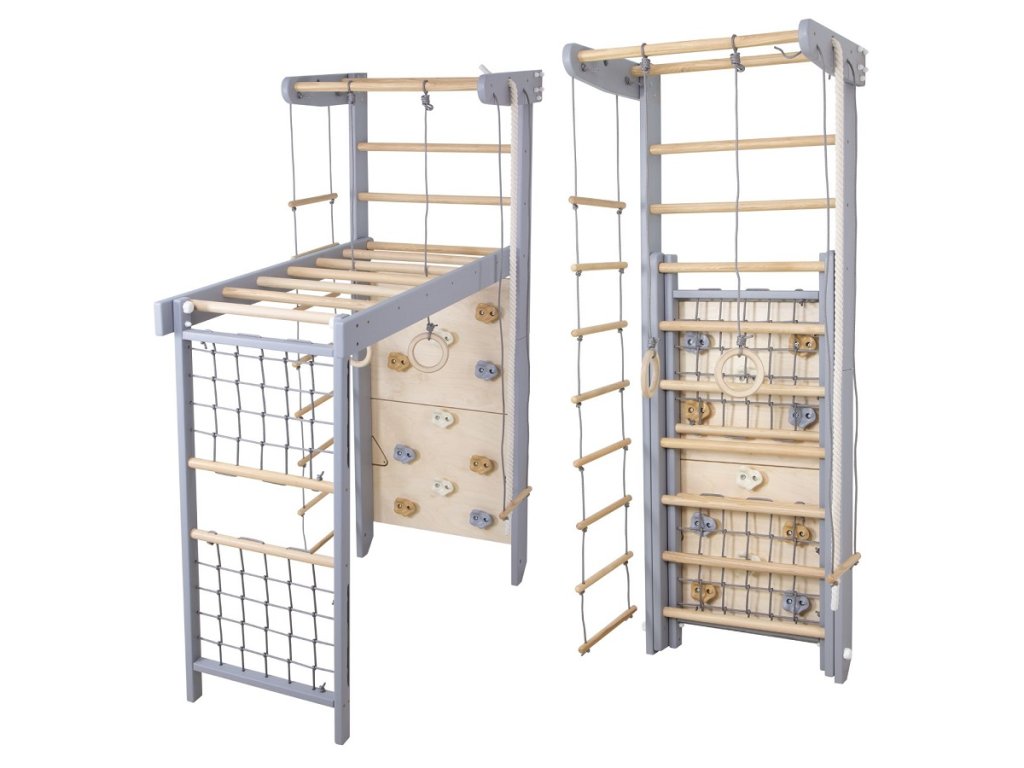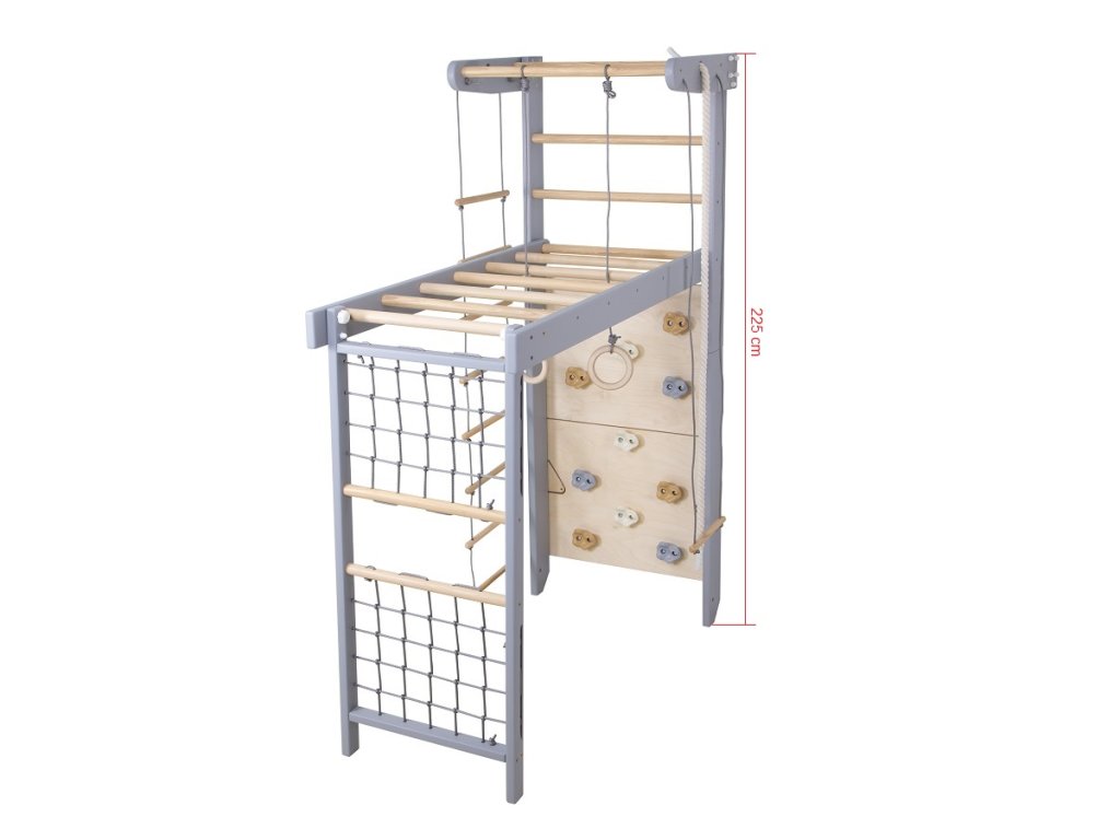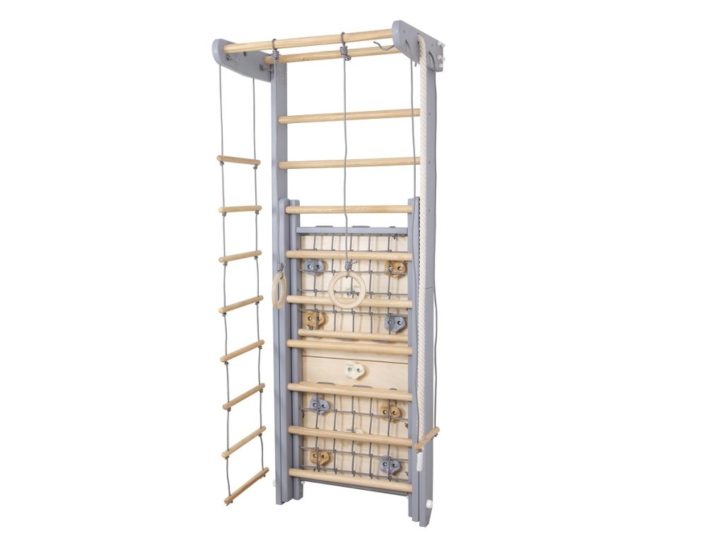 Hledáte kvalitní a multifunkční dětskou gymnastickou sestavu pro cvičení a trénink všech věkových skupin? SportBaby Transformer Grey 2D–225/240 je klasická sestava s dřevěnými žebřinami, která patří mezi nejoblíbenější a nejvyhledávanější pomůcky do domácností i sportovišť.